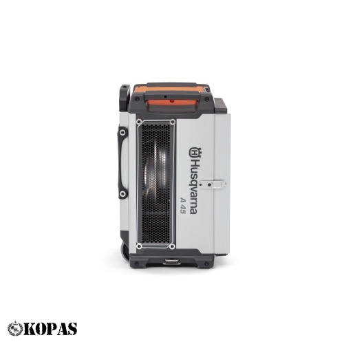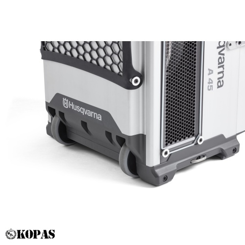 A45 on osa meie uue põlvkonna nutikatest ja hõlpsasti transporditavatest õhupuhastitest, mis on välja töötatud klientide vajaduste rahuldamiseks. Soovitatav kuni 45 m² suurustele ruumidele ühe seadme kasutamisel. Filtri oleku indikaator värviliste tuledega. Uuenduslikud seadmed on kompaktsed ja virnastatavad, mis on eeliseks hoolduse, transpordi ja käsitsemise ajal. A45 saab kasutada nii õhupuhasti kui ka negatiivse rõhu seadmena alarõhkobjektidel. Kahe- või kolmeastmeline filtreerimine peatab laia valikut ehitusplatsidel tavaliselt leiduvaid osakesi, näiteks kvartsi- ja puidutolmu, samuti metalli-, krohvi- ja muude materjalide tolmu. Aktiivsöefilter on saadaval lisatarvikuna.